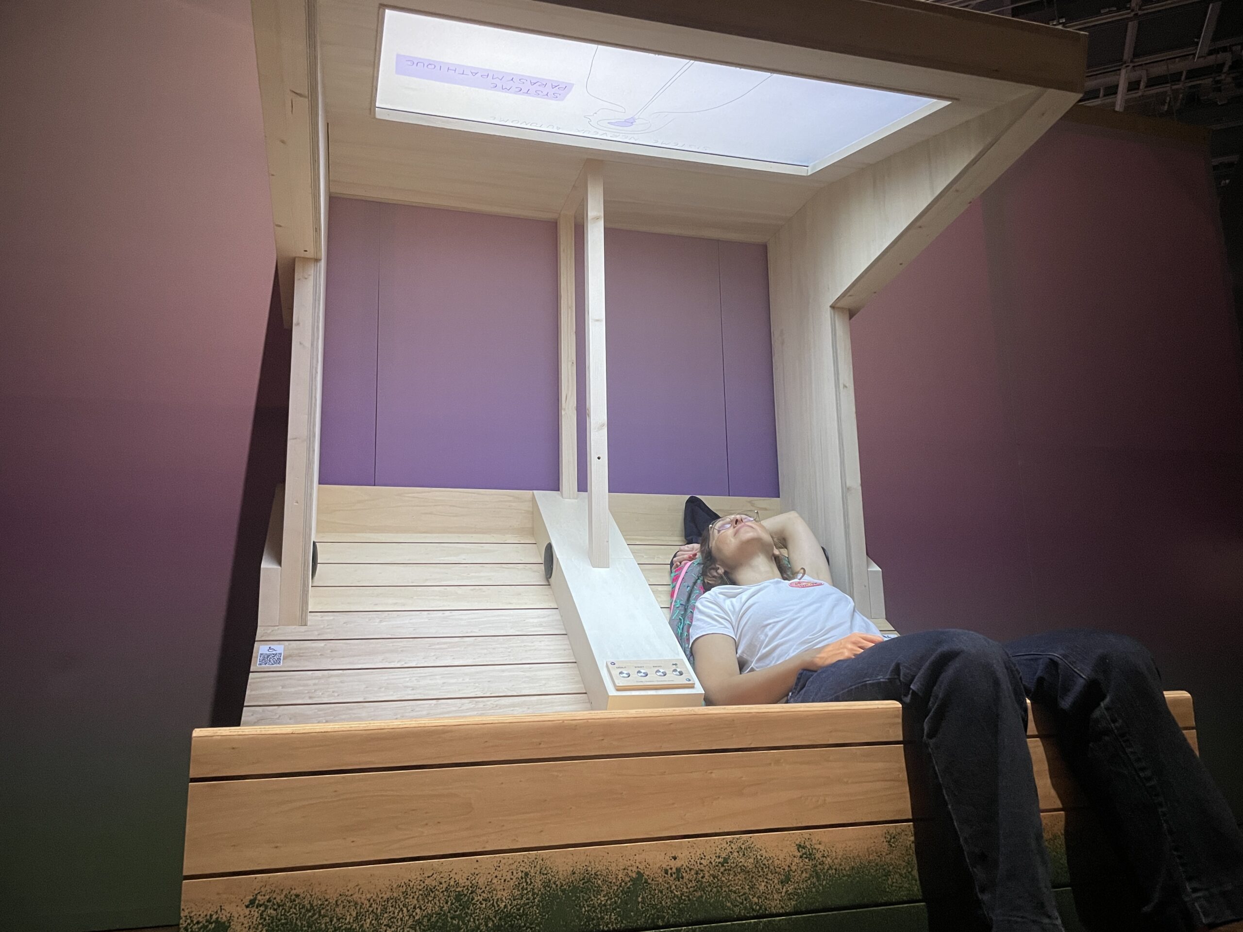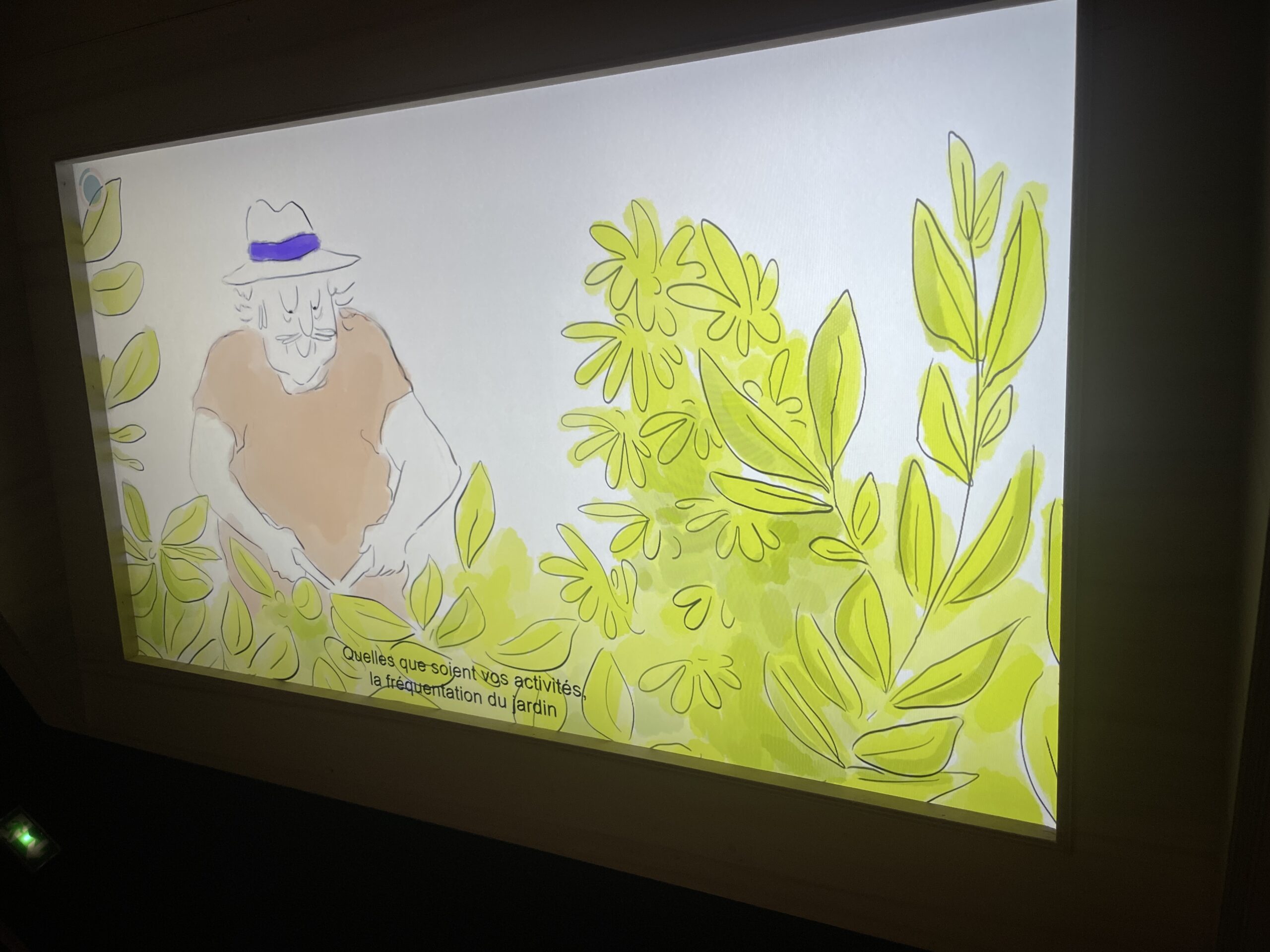 J’ai écrit le scénario pour un film de commande produit par Donc Voilà et réalisé par Marion Auvin. Nous avons répondu ensemble à un appel d’offre pour l’exposition Jardiner à la Cité des Sciences que nous avons inauguré le 12 octobre 2025. Il s’agissait de parler des bienfaits qu’apportent les espaces verts en général et le jardin en particulier sur l’organisme et le cerveau. Nous y avons parlé de cortisol, d’hormones, de neuro-transmetteurs, et avons expliqué les fondements du système nerveux autonome : les systèmes sympathique et parasymaptique. La scénographie prévoyait un dispositif où le public pourrait s’allonger et regarder le film dans une ambiance de détente, de manière a déjà pouvoir se projeter dans les vertus du jardin. Donc Voilà m’a confié le scénario, une première commande dirigée par Sabrina Massen, cheffe de projet audiovisuel chez Universcience.